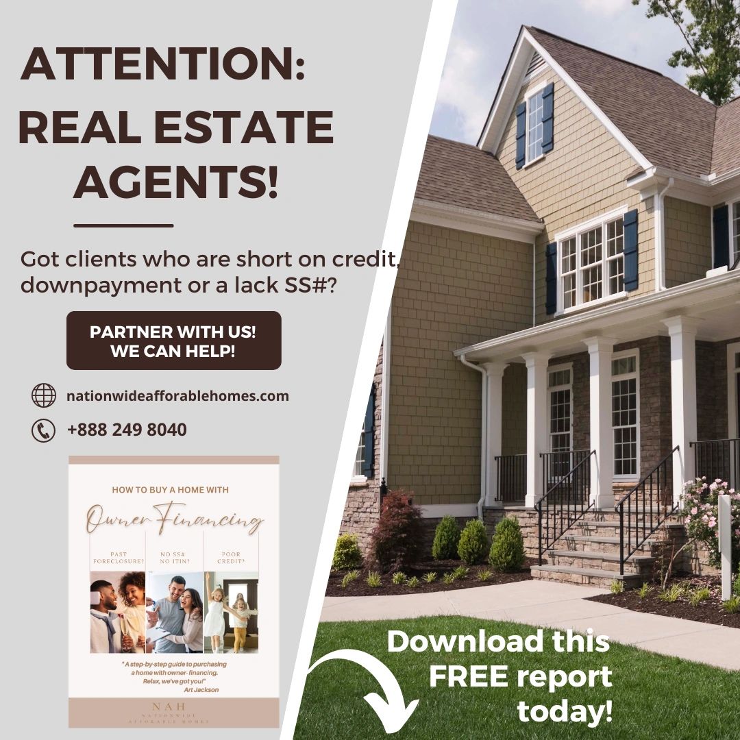 Our owner financing is the same as traditional financing, except that our lending criteria isn’t regulated like a bank, or other lending institutions, so your buyers with low credit scores, and no social security numbers, can now become homeowners!